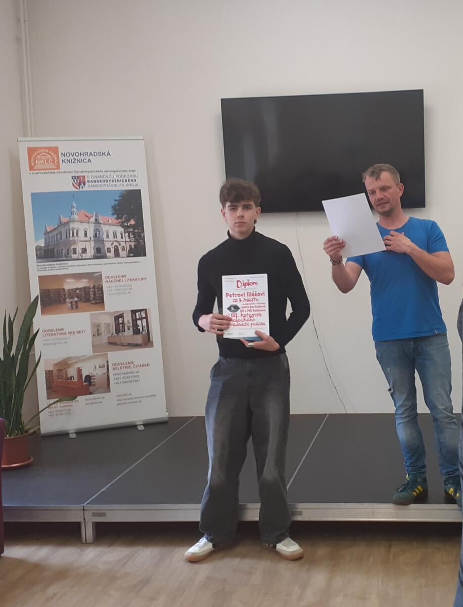 triedy v III. kategórií v prednese poézie získal 3. miesto.